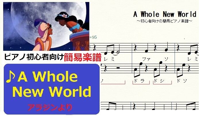 アラジン「ホール・ニュー・ワールド」ピアノ簡易楽譜。