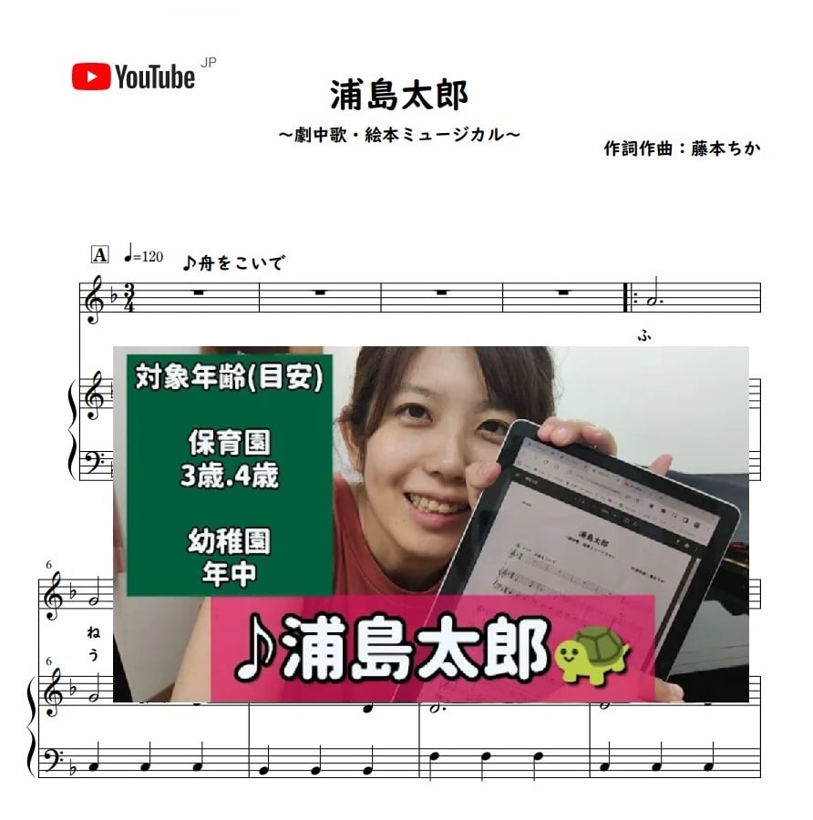 浦島太郎 劇中歌の簡単ピアノ楽譜 | 藤本ちか【幼児音楽(楽譜・音源データ)】